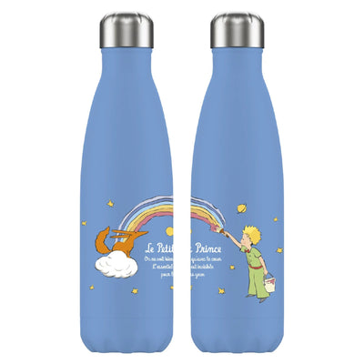 "Bouteille Isotherme à l'effigie du Petit Prince sur sa planète avec la célèbre citation ""On ne voit bien qu'avec le cœur, l'essentiel est invisible pour les yeux"". D'après les dessins originaux d'Antoine de Saint-Exupery. Produit sous licence officielle du Petit Prince. Acier inoxydable à double paroi de haute qualité. Sans BPA et complètement hermétique, cette bouteille gardera vos boissons préférées chaudes ou froides entre 12 et 24 heures. Contenance : 50 cl."